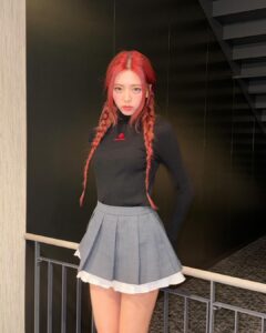 In the dynamic world of K-pop fashion, where trends can change in the blink of an eye, simplicity often stands out amidst the whirlwind of avant-garde styles. Yuna, the talented and stylish member of the globally acclaimed K-pop group ITZY, recently showcased a refreshing take on simplicity by effortlessly styling the Shushu/Tong Mock Neck Sweater paired with a short grey/white skirt, capturing attention and acclaim for her understated yet chic ensemble.